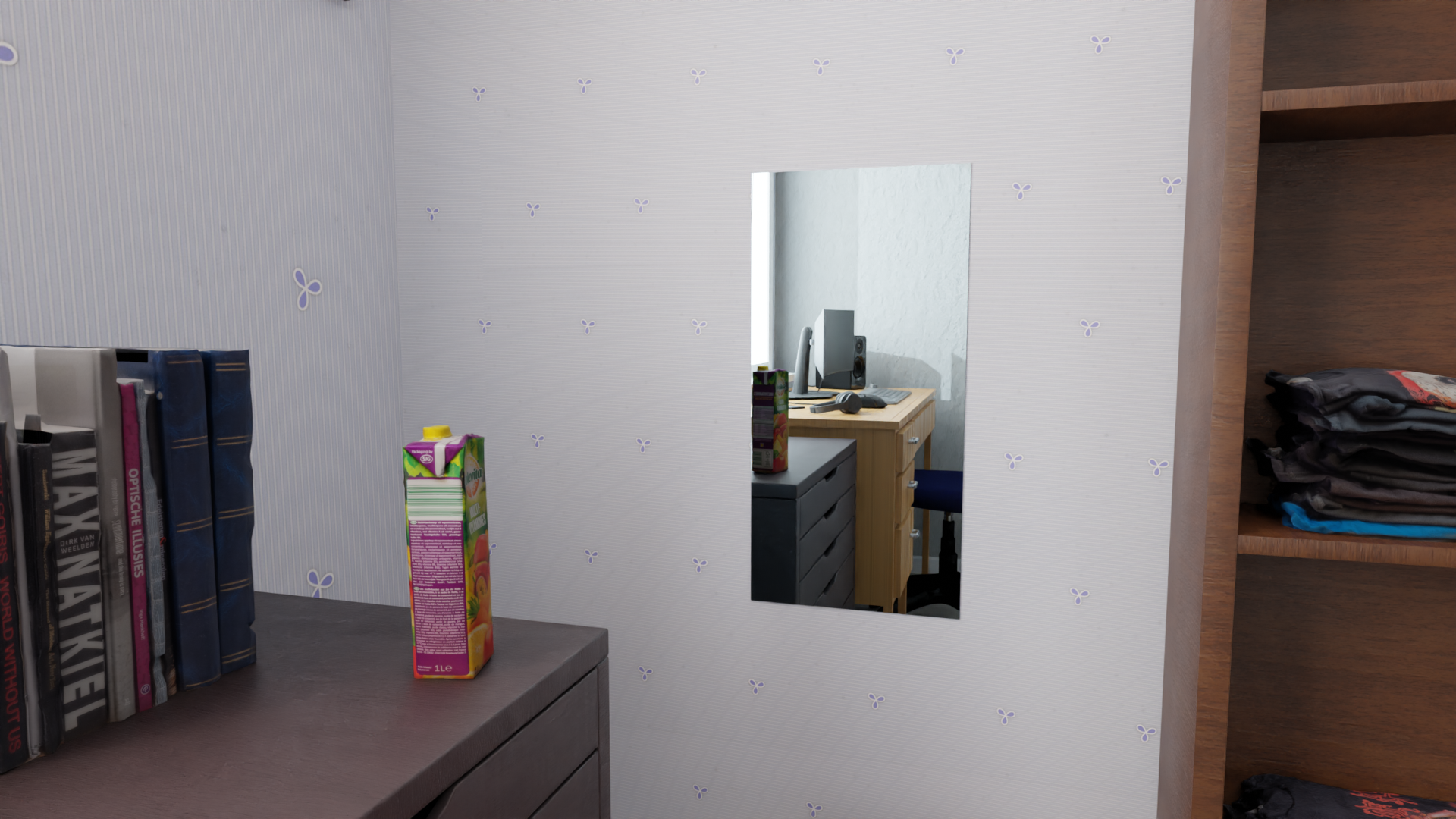 What’s left are two somewhat similar non-physical spaces – a virtual room and its representation in my mind – through which I can wander like a fly.